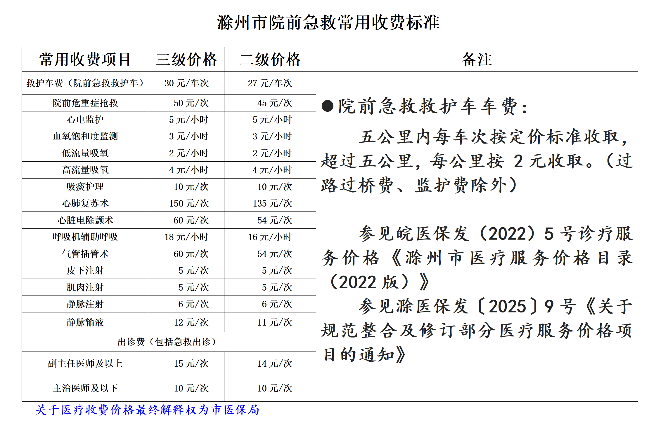 滁州市院前急救常用收費(fèi)標(biāo)準(zhǔn)