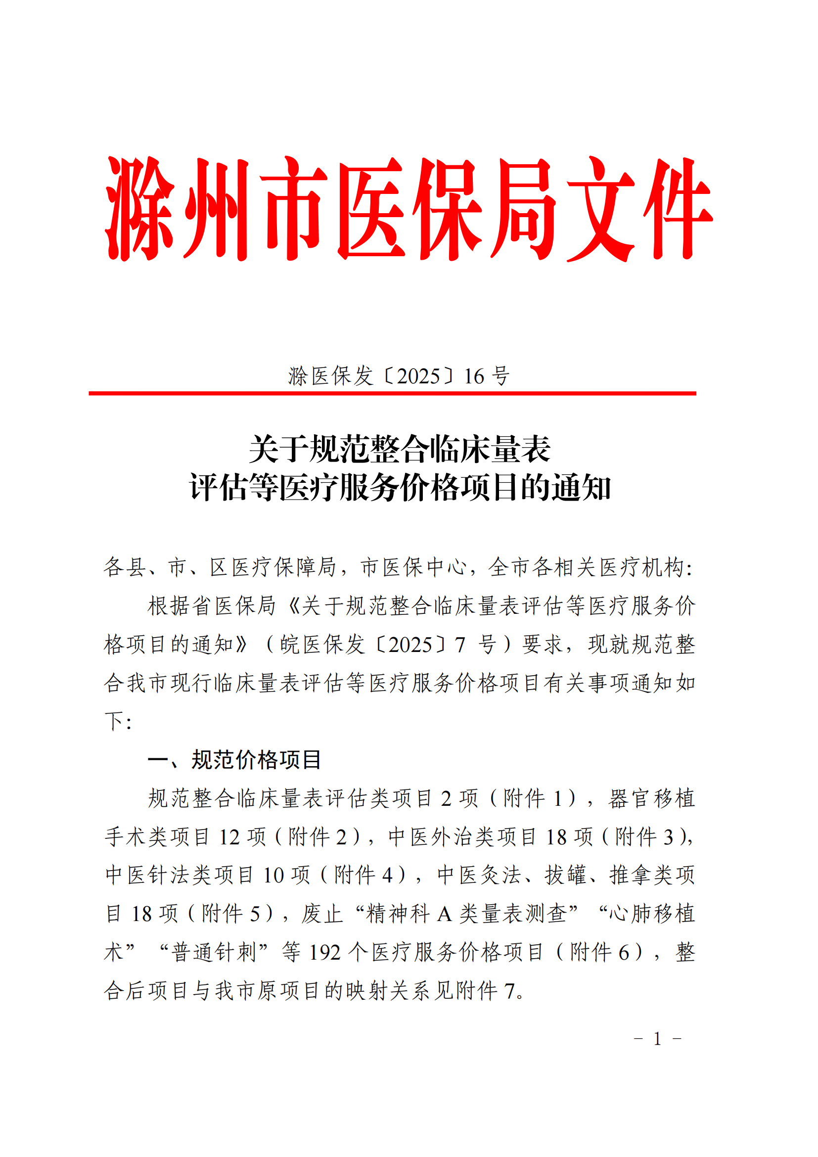 關(guān)于規(guī)范整合臨床量表評估等醫(yī)療服務(wù)價格項目的通知