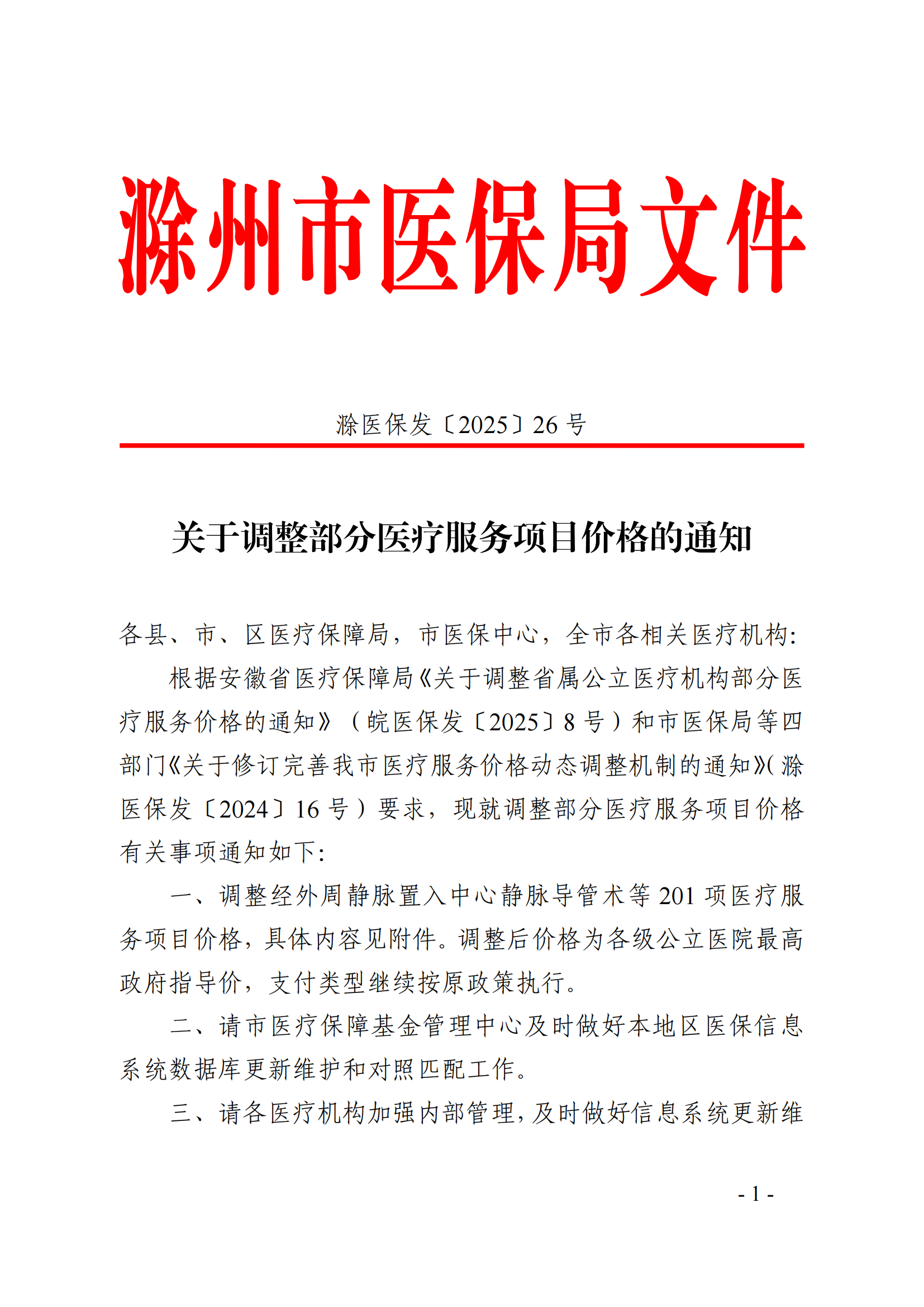 關(guān)于調(diào)整部分醫(yī)療服務(wù)項(xiàng)目價(jià)格的通知